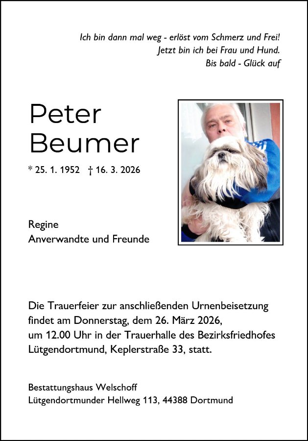 Urnentrauerfeier, Trauerhalle Bez.-Friedhof Lütgendortmund